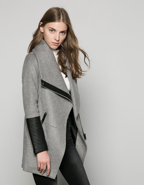 Sobretudo lã e couro sintético - 59,99 eur (Bershka)